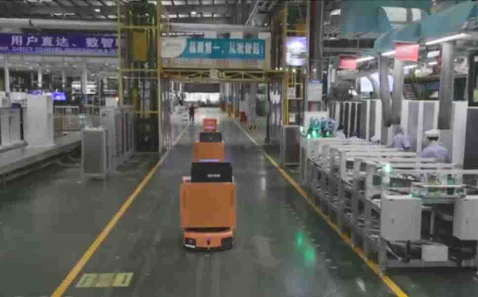 为车载冰箱物流配送打造的智能解决方案,,,包含产中物流通过潜伏举升AMR搬运至线边,,,产后成品物流智能仓储,,流程包含产中物流智能齐套入库,,,线边安灯叫料AMR智能配送至线边,,,,成品入库、、出库,,,,通过无人堆高车机器人,,,,智能仓储管理替代人工作业管理,,实现更高存储、、、、更高效率、、、更具柔性化的解决方案。。。